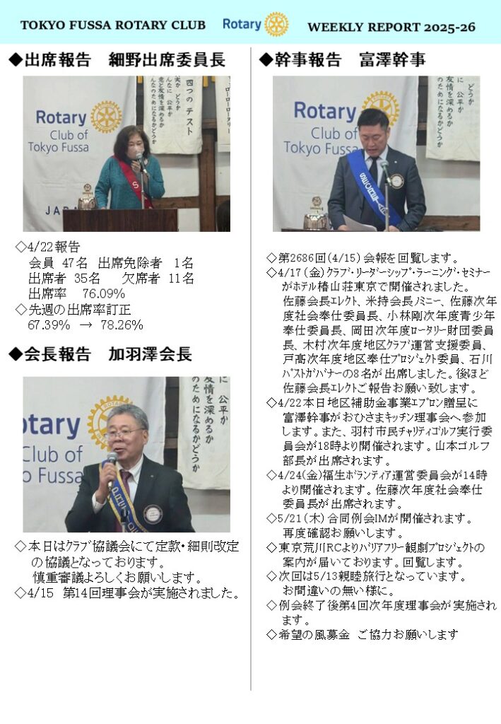 第2687回例会(2026.4.22)